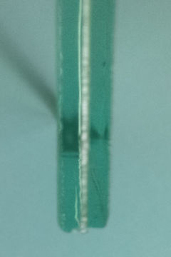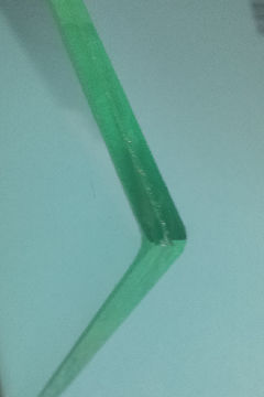 | 防犯ガラス(合わせガラス)の例・・・透明3mm+特殊フィルム30ミル+透明3mm(上記写真の製品) | |