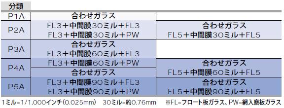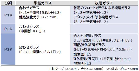 ③P1Kに属するものは、ドライバーを使ったこじ破りに対し防犯性能が期待できるレベルには届かないが、単板ガラスのフロートガラス、網入りガラス、強化ガラスとの比較においては優位性が認められたもの。
