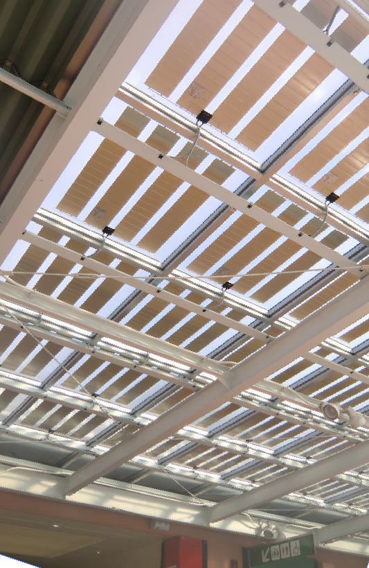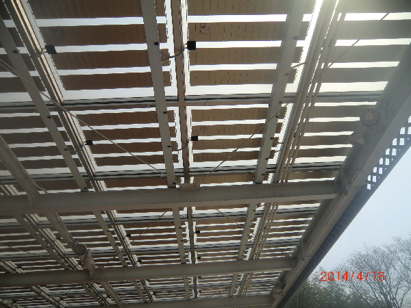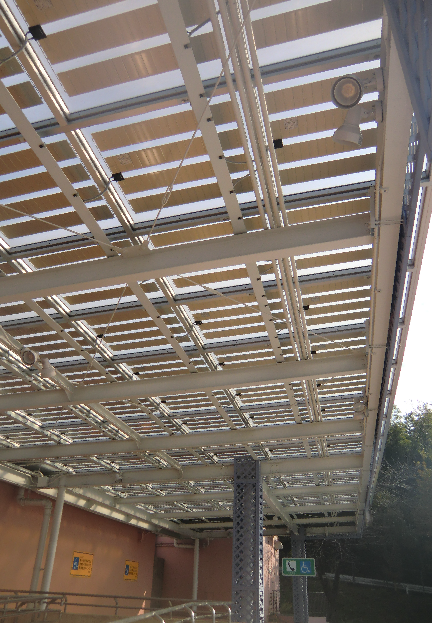 防汚ガラス設置実績例 太陽光発電用(高速道路 某パーキング 屋根部分)