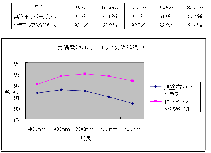 「セラアクア塗布太陽電池カバーガラスの可視光線透過率」