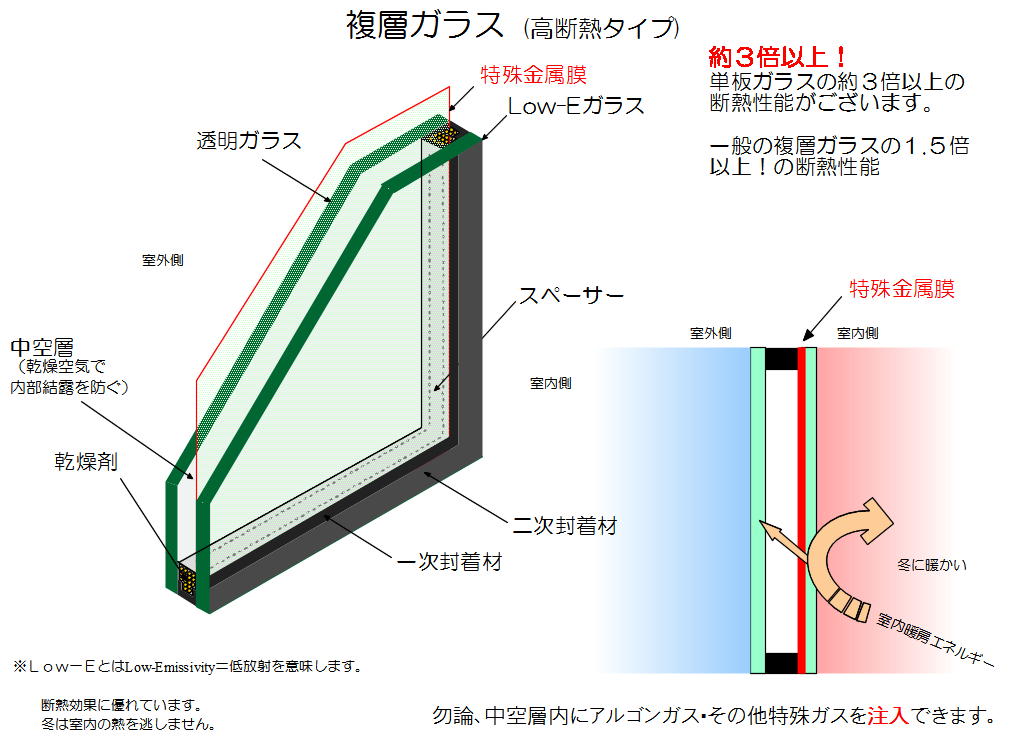 徹底的な省エネ派の方はJIS工場で作るアルゴンガス入りの断熱性能がUPした製品もお届けできます。