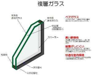 | 複層ガラス(高断熱LowEペアガラス) | 複層ガラス(断熱ペアガラス) |