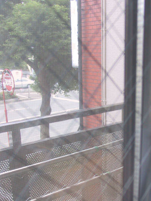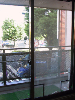 | 工事前・・・網入りのガラス窓。お部屋の印象、窓からの眺めも暗い感じです。 | |