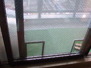 | 工事後・・・網が無くなり明るい部屋になりました。安全性の高い防犯ガラスに変更し防音効果もUPです。 | |