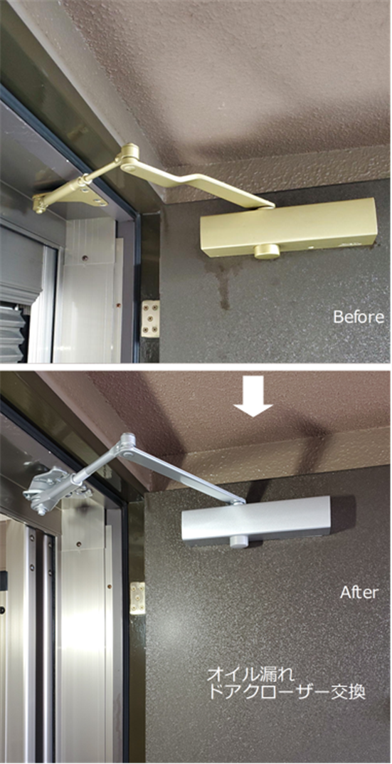 (室内側ドア全体・壁、床、巾木、ドアクローザー、郵便受け)付近の